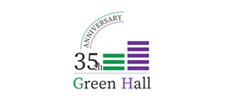 グリーンホール相模大野の記念ロゴを作成グリーンホール相模大野の35周年記念ロゴマークを、市場調査から分析してデザイン提案を行いました。「舞台」と「音量調節のボリューム」を緑と紫のボーダーラインで表し、成長と発信をメッセージしています。