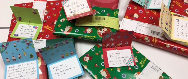 サンタプロジェクトで本をプレゼント自宅でクリスマスを過ごせない子どもたちに本を贈るプロジェクトです。学生ボランティアが書店や贈り先の施設、市民サンタとの連絡調整を行い、子どもたちに直接プレゼントを届けています。