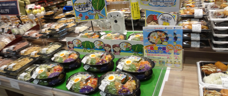 スーパー三和との産学連携プロジェクト相模大野の子育て世代を「食」で応援する取り組み。親子が楽しみながら「食育」や「食品ロス」を学べるよう、エコバックデザインの投票や、子ども向けカードゲームの配布、お弁当メニューの販売などを行う予定です。
