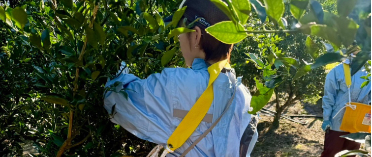 香酸柑橘「新姫」収穫インターンシップ熊野市の特産品である香酸柑橘「新姫」の収穫時期、学生たちが収穫・出荷を手伝っています。収穫方法や規格品・規格外品の違いなどを現場で体験して学びます。本学で10年以上続けている活動です。