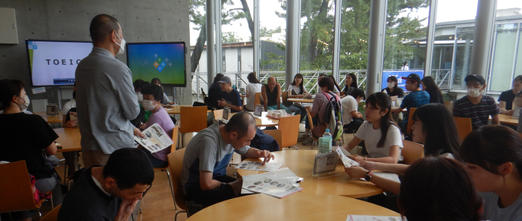 社会福祉事業団銀河との交流福祉施設の利用者と職員を大学に招待し、学生との交流活動を実施しています。カフェテリアで一緒にランチをいただき、その後キャンパス内を散策します。施設職員からの講話もあり、貴重な学びの機会となっています。