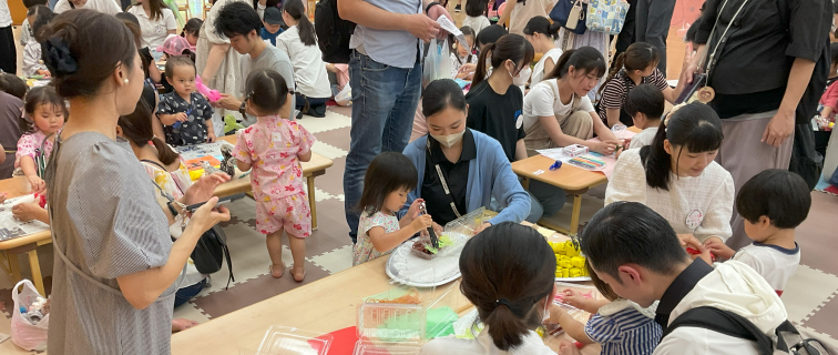 地域の親子との交流プロジェクト大学近隣の子育て広場の協力を得て、本学子育て支援センターとともに親子と学生の交流活動を行っています。2024年度「乳幼児の親子のためのなつまつり」では、学生が縁日、工作、盆踊りなどを企画運営しました。