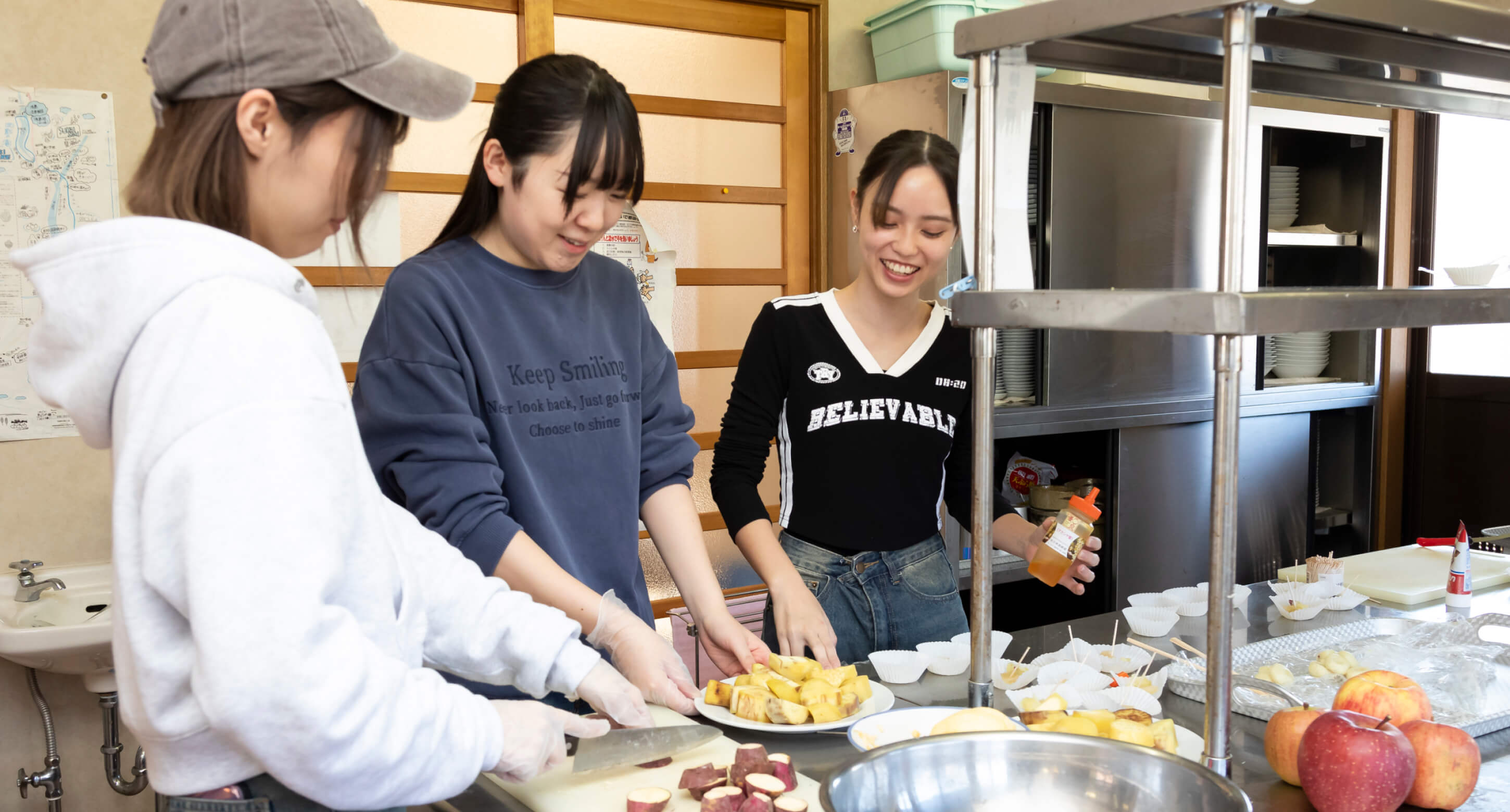 沼田市利根町プロジェクト本学のゼミで土地の自然や文化、農作物を生かして地域を元気にするプロジェクトを実施。2024年度は農家カフェの実現に向けて、新鮮なリンゴやサツマイモでスイーツを試作し、収穫祭で試食会を行いました。