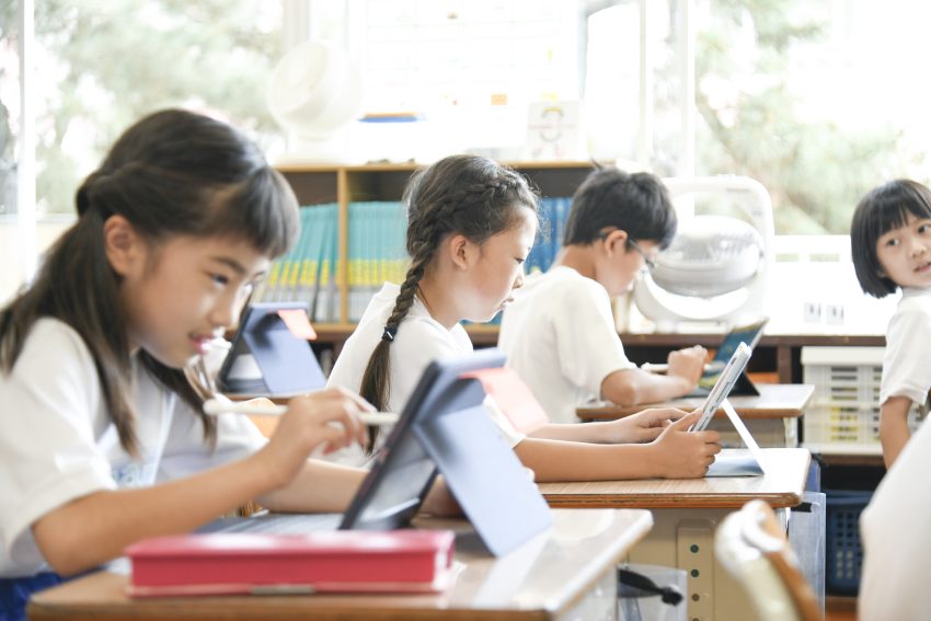 教育目標を形作る教育の体制として、「少人数学級編成」を実践し、一人ひとりに寄り添う時間を確保できる教育環境を整えています。学級の中で子どもたちの個性が重なり合い、ときにぶつかり合い、絆はだんだん深まっていきます。また、ICT環境の整備、小学部オリジナル家庭学習プリントの作成など、子どもたちの学習のスピードに合わせた、きめ細かな学習支援を行っています。