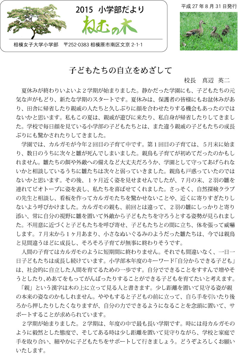 9月号(発行2015.08.31)「子どもたちの自立をめざして」