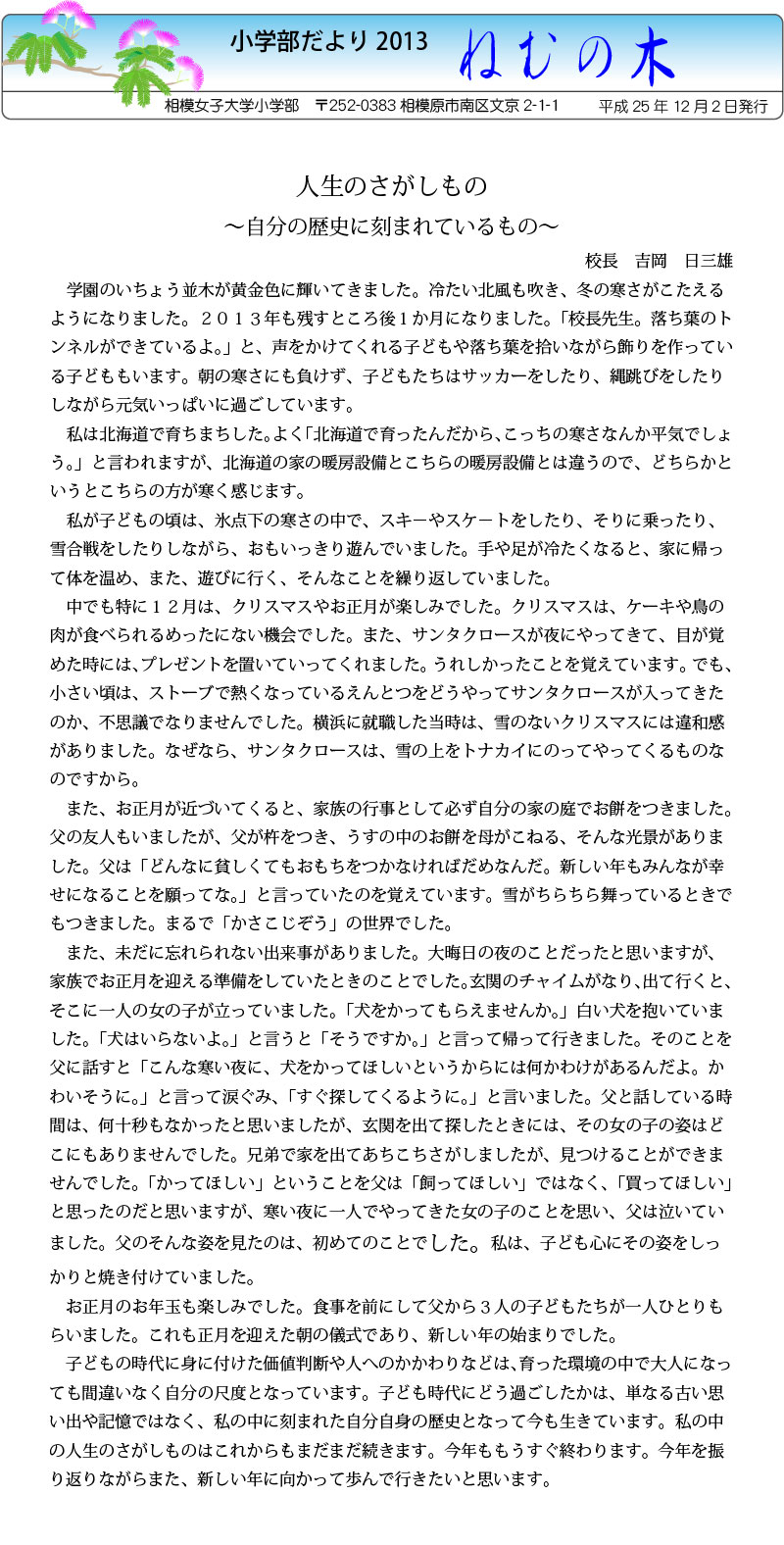 12月号(2013.12.2発行)「人生のさがしもの」~自分の歴史に刻まれているもの~
