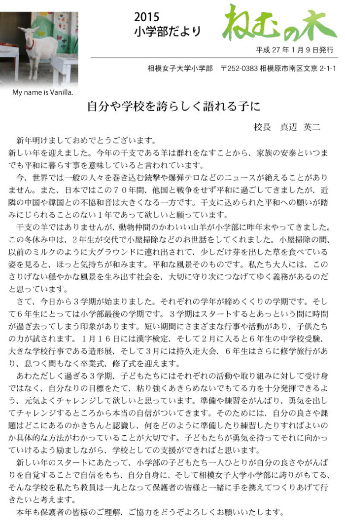 1月号(発行:2015.01.09)「自分や学校を誇らしく語れる子に」