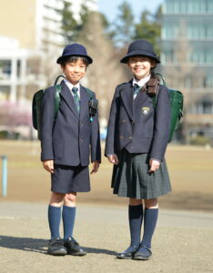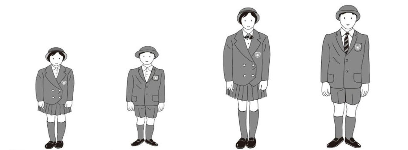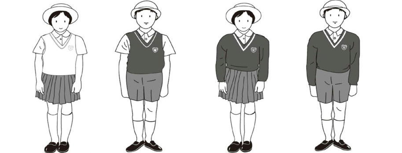 移行期は、その日の気温に合わせて、ご家庭での判断で夏の制服か冬の制服を着用させてください。どちらともいえない日は、夏の制服(半袖ポロシャツ・ブラウス)にし、下図のようにセーター類で調整してください。帽子も夏用となります。(全学年共通)