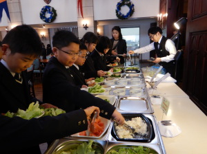 自分の食べられる量だけ取ることや、食器を片付ける時に英語でお礼を言うなど、マナーを守って食べることができました。