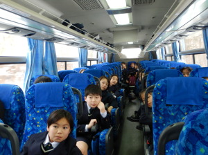 バスの中では、そこでの生活のマナーをDVD で学習しながら向かいました。