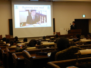 まず、副料理長から、 イギリス式のテーブルマナーについて、食器の使い方やお料理の食べ方などを教わりました。