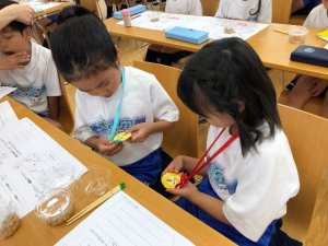 まずは、お箸の使い方を○×ゲームで学びました。ほとんどの子が大正解でした。
