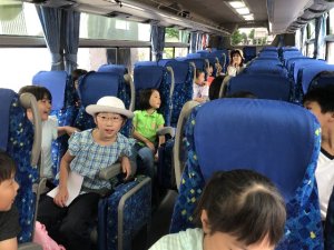バスの中では、子どもたちがテンション高くバスレクを楽しみました。