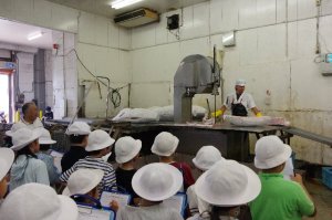 午後の見学はマグロの加工工場丸福水産さんです。毎年お世話になっている工場では、社長さんが明るく出迎えてくれました。