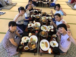 夕飯も頑張って食べました。見学の成果もあってマグロの刺身に大喜びで、とてもよく食べていました。