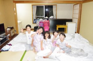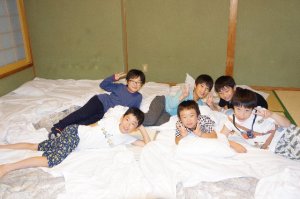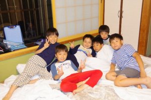 初めてのみんなとの就寝も、楽しくて仕方ない様子でした。(ごめんなさい、男子4班と女子7班のの写真がありません。)