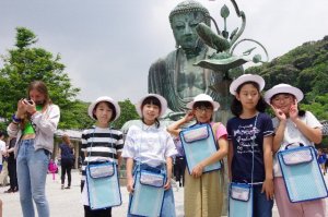 次の見学地は大仏です。ガイドさんが大仏の絵を見せながら、説明をしてくださいました。