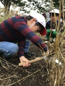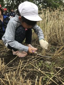 2年生は農園に行き、1年生の時に巻いた小麦の収穫をしました。
