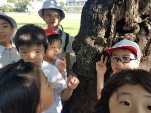 子どもたちは、決してとろうとはせず、樹液を近くに運ぶなどして、優しく見守っていました。自然に親しんで生活している小学部の子どもたちです。