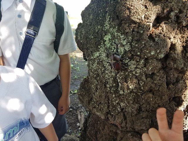 何かなと寄ってみると、立派な雄のカブトムシがいます。