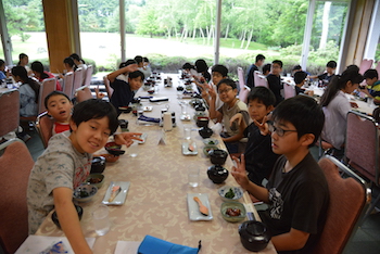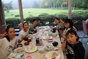 なんとかお天気ももち、午後の活動を終了。今日はたくさん歩いたので、しっかりと夕食をいただきました。
