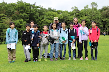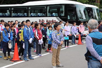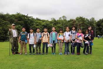午前中の見学は、青木ヶ原溶岩流の上にできた樹海のハイキングです。お天気も回復。ガイドさんに挨拶をして、6チームに分かれて見学に出発です。