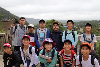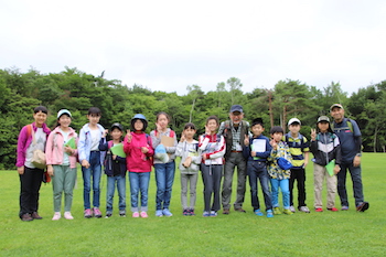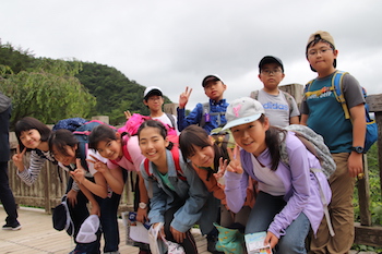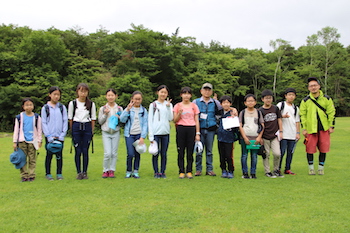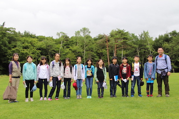 青木ヶ原樹海のハイキングを終え、ガイドさんと一緒に記念撮影をしました。