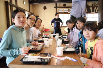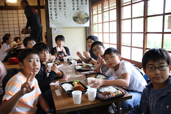 午後の見学地である、いやしの森根場に移動し、昼食をいただきました。
