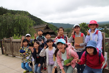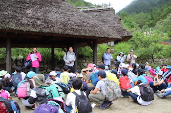 クラフト体験後、根場を自由に見学しました。昔ながらの水車や茅葺屋根の民家を見て回りました。また、根場を襲った土石流の被害についてもお話を聞き、災害が起きた時、自分たちがどのような行動をとるべきかということも考えることができました。