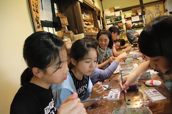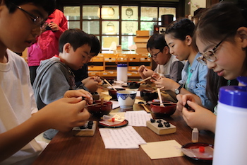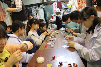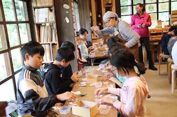 子どもたちは、土のレリーフづくりや彫金の工作、匂い袋な練香の作成、フクロウのストラップづくりなどに取り組みました。