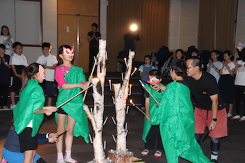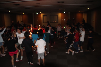 キャンドルファイアーでは、各チームのスタンツ発表やダンス、合唱などで盛り上がりました。