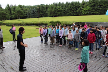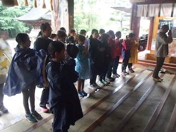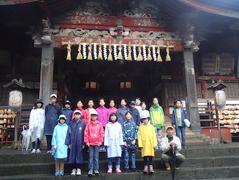 小学部に到着。閉校式を行いました。なんとかお天気ももち、全行程を無事に終了することができました。