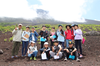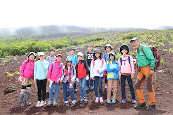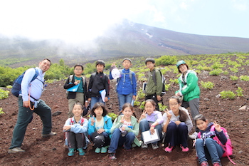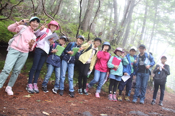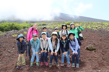 梅雨空の中、ガイドさんからも久しぶりに山頂が見えたと伺いました。子どもたちの頑張りに対するご褒美かもしれません。