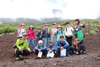 御中道を進んでいる途中、富士山の山頂が顔を出してくれたので、各チームごと記念撮影をしました。