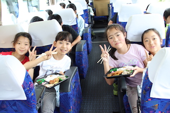 バスの中で昼食をいただき、一路、小学部へ向かいます。
