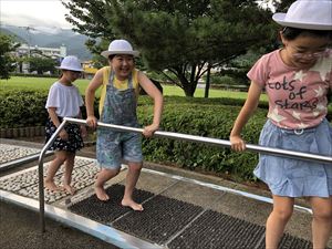 「大丈夫」「痛くないよ」と言っていた子も、先が鋭い足つぼを見ると、「先生、ひどい!」と言いながら苦痛の表情で挑戦していました。