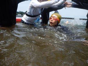 そして、足のつかないところの深さになっているフロートまで挑戦することができました。