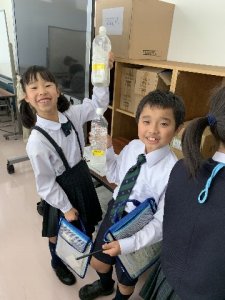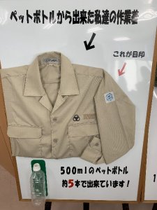 リサイクルによって生み出された商品を見て、子どもたちは、「すごい新品みたい」「これ、売っているんですか。」などと質問していました。「小300円中500円大1000円。リサイクルですから。」と言われ驚いていました。「粗大ごみは、みんなリサイクルになるんですか?」と尋ねると「粗大ごみは、出すときにリサイクルしてください。」と頼まないとごみとして捨てられてしまいます。そして、「リサイクルと言われてもあまりにも汚いとごみになってしまいます。」というお話に「もったいない。」と子どもたちは口々に言っていました。「みんなも丁寧に使うと次の人たちも使えて、また、次の人へと何度も使う人の所へリサイクルされますよ。物は大切にね」と言われ子ども達は、大きくうなづいてました。また、ペットボトルの捨て方やペットボトルが何に変わるかなど説明がありました。