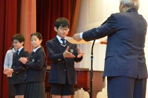 小学部の児童会代表委員の任期は1月から12月まで。6年生は下級生にバトンを渡す時期になりました。来月から4,5年生が代表委員として活動します。