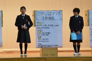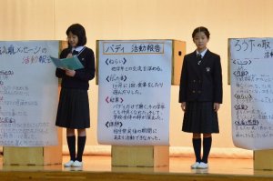 今日の朝会は、1月から12月までの活動報告が行われました。