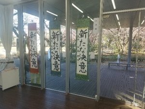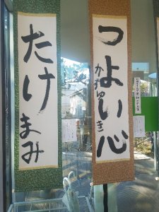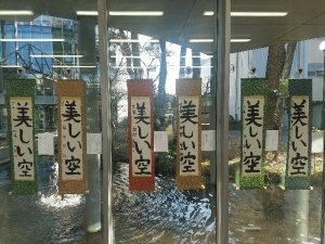 この書初め展は小学部で行われた書初め教室(3年生以上)の入賞者作品、相生祭の時に学内外から一般参加で行われた書初め教室に参加した(1,2年生)の中から入賞した作品が展示されています。