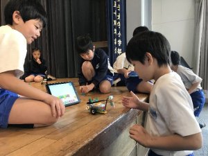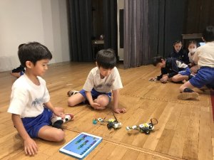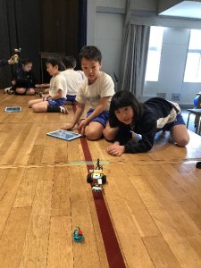 子どもたちは、お互いに声を掛け合って、うまくいかない子が「どうしたら、いいの?」と聞き、教え合う姿が見られました。「あっ、できた!ありがとう!」とお互いに協力し合いながら、ロボットを楽しんで動かしていました。楽しみながら、そして自分たちで考える学習をすることができました。子どもたちの中にある「分からないけど、とにかくやってみよう!」という気持ち、そしてやってみて「できた!」という経験そのものが、多くのことを学び、考え、身につけることにつながることを改めて実感することができました。
