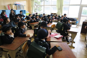 自然災害などで、お迎えにきて頂くほどではないものの、早めに全校一斉に下校しなければならない時には、方面別に教員が引率しながら下校することがあります。そのための集団下校訓練が行われました。
