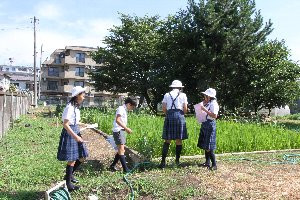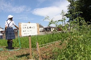 農園では、5年生が稲の観察を行っていました。夏休み中、交代で観察にくることになっています。