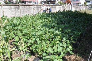 田んぼの隣では、枝豆がたくさんの実をつけています。