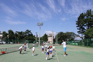 放課後クラブ、夏休みの特別カリキュラムとして、今日はテニス教室が開かれました。子どもたちは、用意された新しいラケットを手に、広いテニスコートの上を走り回っていました。