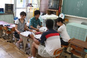 1年生の教室では、初任者研修が行われました。今日は、小学部の研修部主任の講義です。8月に入ると全国的に研究団体の研究会がたくさん開かれます。小学部教員も、いろいろな研究会、研修会に参加し、勉強してくることになっています。