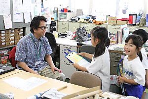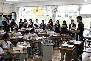 5年生1組では、子ども教育学科の学生が授業見学に来ていました。実際の指導を見学することで、小学生の子どもたちどのように話せば伝わるのか、どのような組み立てにすると子どもたちを引きつけ、理解してもらえるのかを学生達は学習します。