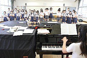 課題曲を歌い込んでいく過程は、決して楽しいだけのものではありません。指導する教師も子どもも真剣そのものです。教室内には他のクラブにはない緊張感がありました。