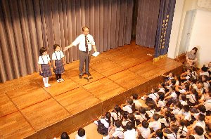 始業式では、校長先生のお話、新しい先生の紹介、転入生の紹介、表彰式などが行われました。